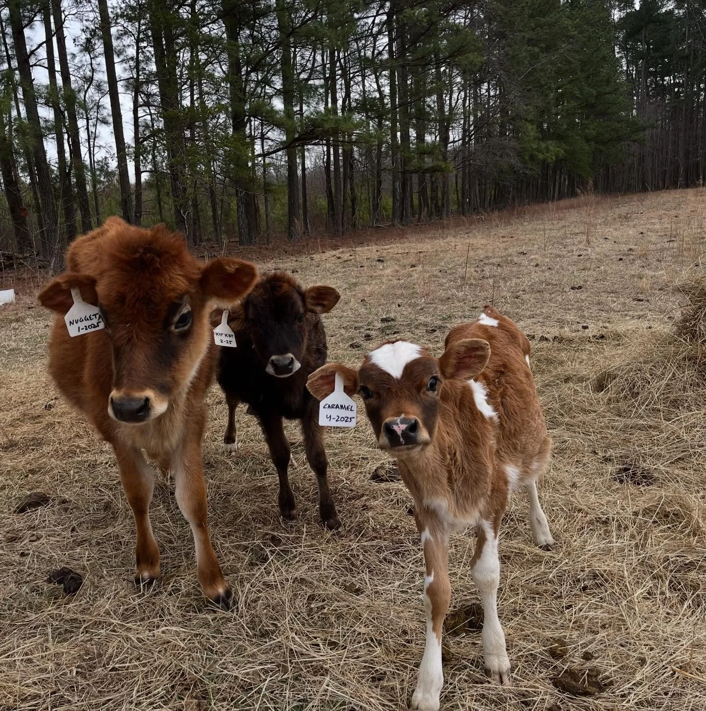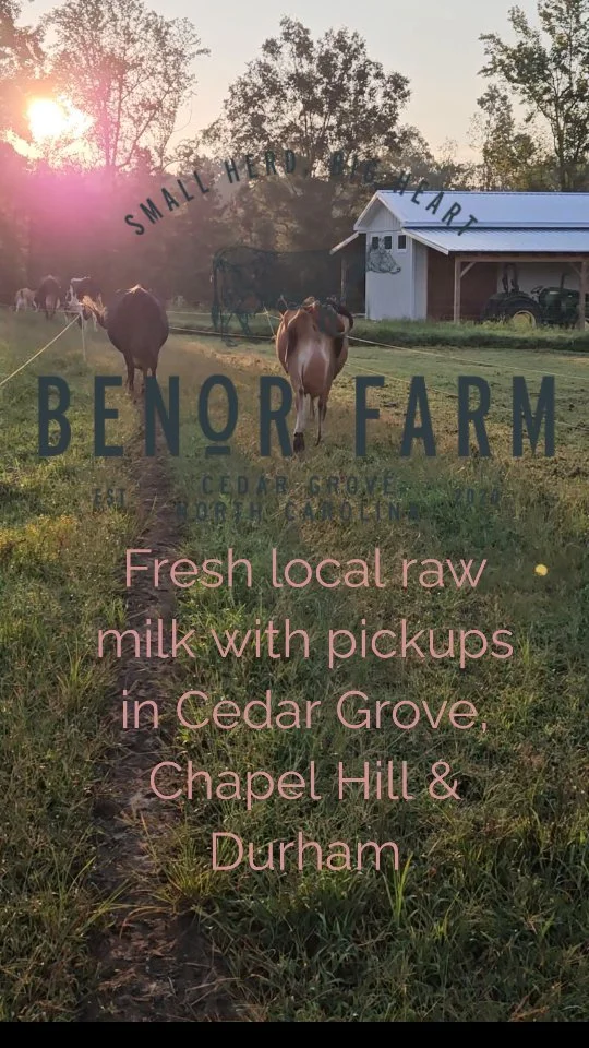 Two first generation farmers raising a herd of twelve dairy cows, an ever-expanding flock of chickens and one very confused duck on 37.5 acres just north of Hillsborough, NC.